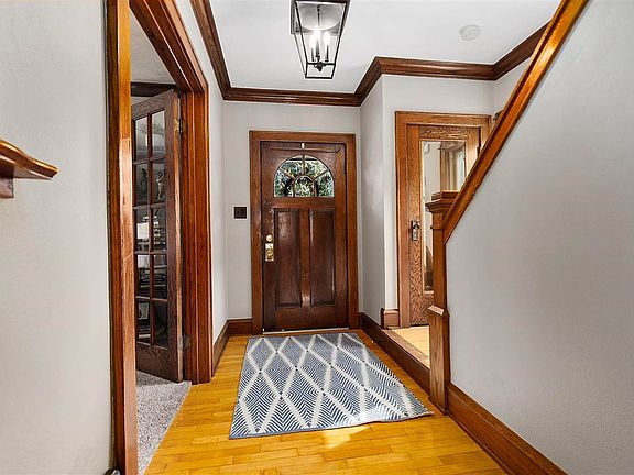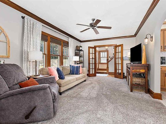 You won't want to miss the stylish updates in this charming home! Only a few blocks from desirable Erb Park. Crown molding, French doors, arched doorways, hardwood floors and sunroom w/ walls of windows are some of the highlights! 3 bedrooms & 1 full bath upstairs. Primary bedroom includes stairs to attic walk-in closet. Newer roof, furnace, A/C & windows. Outside is equally impressive: oversized garage, fence, storage shed, paver patio w/ fire pit and deck w/ pergola!