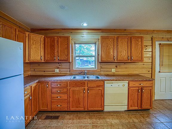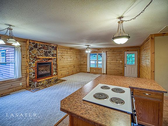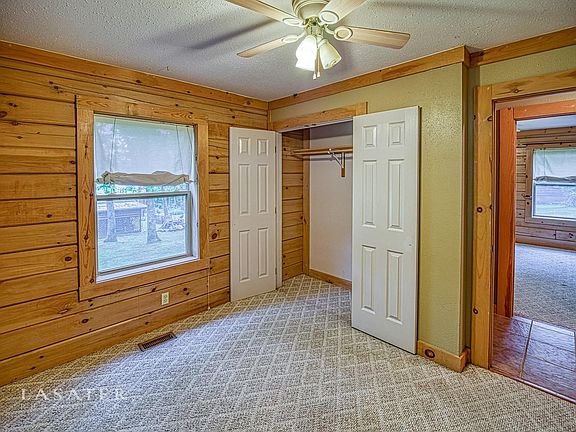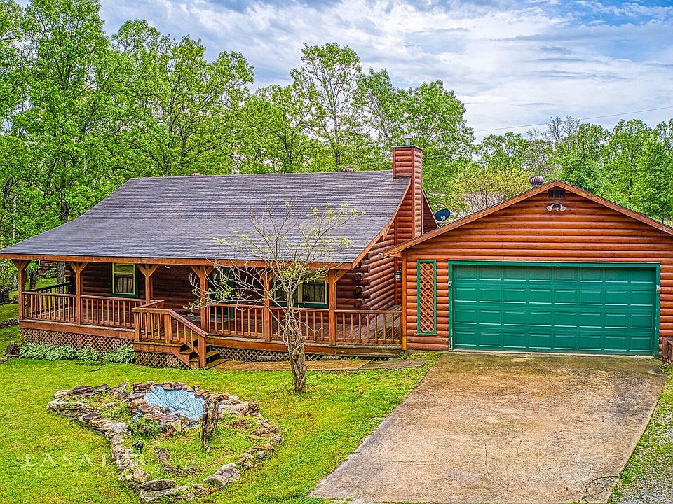 Log home with a 2 car detached garage (24 x 24). Covered porch, home features - 2 bedrooms, 1 full bath, fireplace- open floor plan. Wintertime view of Bull Shoals Lake. Just a short drive to Sugarloaf Harbor Marina & Boat Launch.