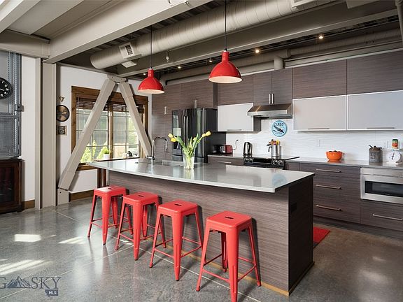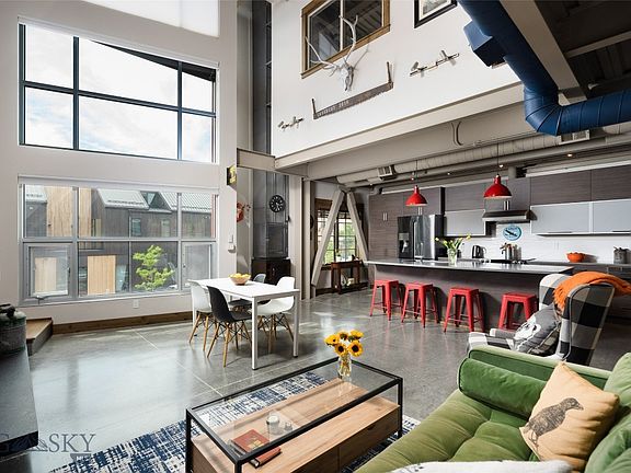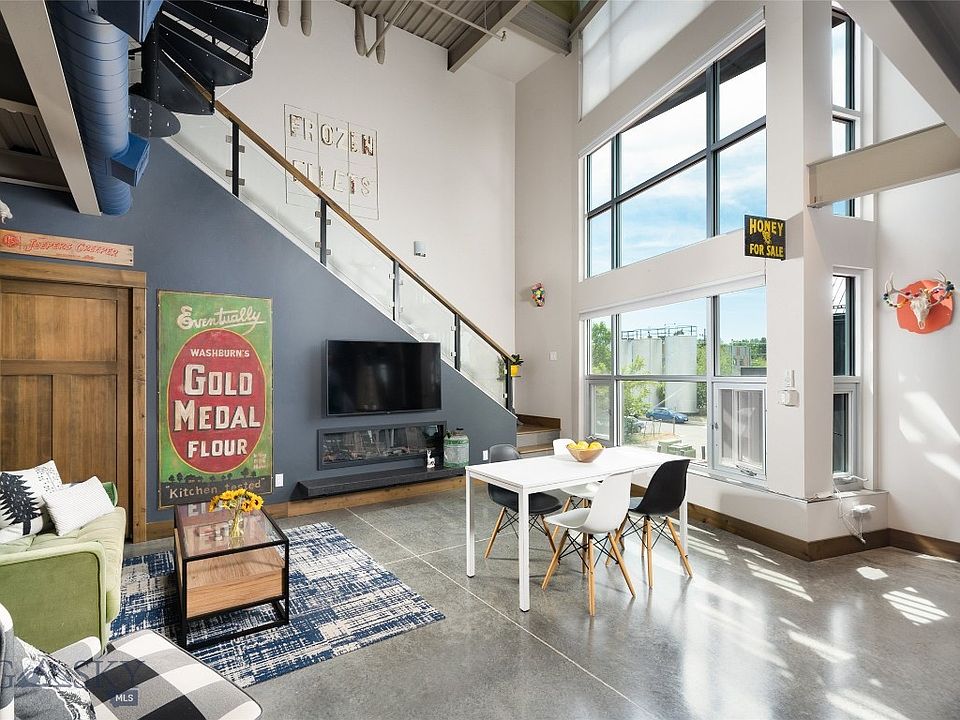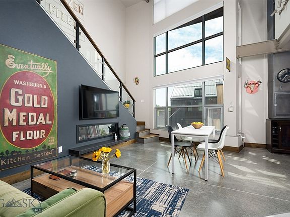 Live the Montana life in vibrant NE Bozeman in this architecturally designed loft-style condo built out in 2017. Just steps from the front door you'll find a local favorite bakery, coffeehouse, Mainstreet to the Mountains trail system, pocket parks, galleries & breweries. Just a short walk to downtown, the Cannery District & a 20 min drive to Bridger Bowl. Modern yet cozy, this spacious loft boasts steel beam construction, an airy open layout with 27 ft high floor-to-ceiling windows, high-end finishes & amenities. Versatile living spaces can be adapted to any lifestyle. A private rooftop deck with a view of the 'M' & Frog Rock. This smart, innovative space features zone heating, air-conditioning, a spiral staircase, a heated master bathroom floor, a laundry chute, electric fireplace &, yep, a dumbwaiter. The Mill Street Lofts were designed for efficient, low density living & durability. All Units include a heated storage space, a designated carport & can be accessed by elevator.