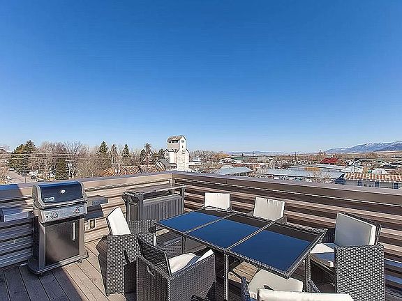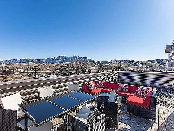 LIFESTYLE, LOCATION and VIEWS right in the middle of everything NE Bozeman has to offer: Wild Crumb Bakery, Treeline Coffee, Art Galleries, Breweries and direct access to the trails. Yet only a short walk to the shops and restaurants of main street Bozeman. Massive two story windows provide a light, airy and open feeling while the rooftop deck provides unmatched views of the Bridgers. This unique loft includes the “cool” factor with smart home automation of dimmed lights, zoned heating, door locks and music. The master suite can be private or open (just adjust the garage door as desired), and includes dual walk in closets and large two person shower. Main floor murphy bed and 3/4 bath add hospitality options to the guest bedroom and full bath on the 2nd floor. Main floor laundry room includes storage. The 3rd level flex space can be used as an office, family room, additional sleeping - all with gorgeous views. Enjoy cocktails and the sunset while relaxing on the rooftop deck, which is prewired and ready for a hot tub. Keep your gear in a first floor storage locker and hit the slopes - Bridger Bowl is only 2 stop signs away! *Some furnishings are negotiable