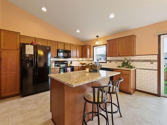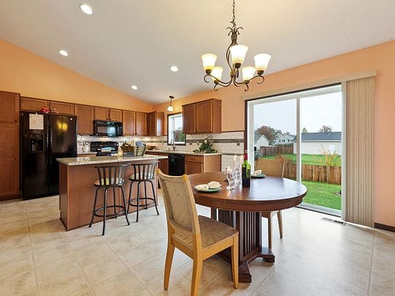 Open floor plan with vaulted ceilings. Beautiful Eat in Kitchen with Granite Counter tops Island, and tiled custom back splash, walk in closets in both bedrooms, over sized 3 car garage. Irrigation system. Roughed in plumbing in unfinished basement, Freshly painted and new driveway asphalted. Must SEE!