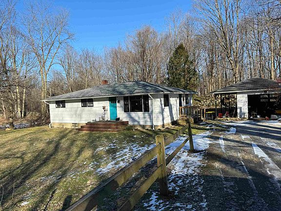 This charming 3-bedroom ranch is in a great location. The 3.4 acres of land provide privacy, as well as play space for animals or people, and lovely woods. It is on a quiet road but close to town. Many nice upgrades have been recently done. These include a new roof, an energy efficient hot water heater, some new windows, and a remodeled bathroom. This is a sweet affordable home!
