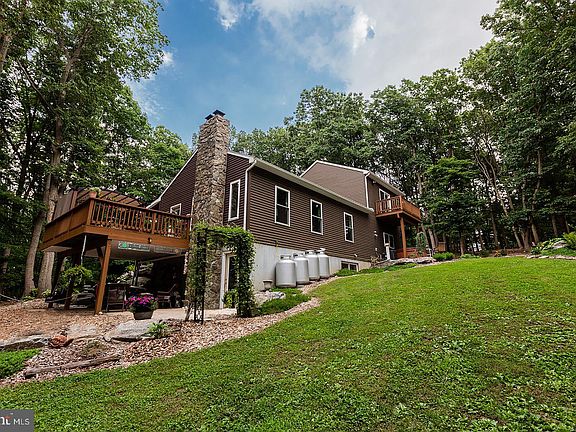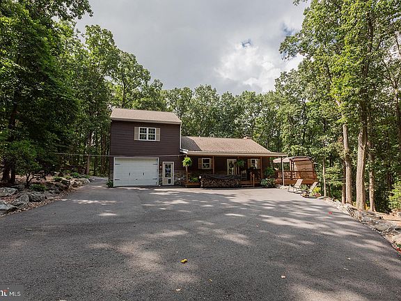 Tucked beneath the trees, this charming private home, is a must see! With 5+ acres and a massive pole barn/ garage and workshop, there is a lot to appreciate in this fantastic property. Completely remodeled and landscaped. All new appliances, light fixtures, custom, reclaimed barn wood flooring and cabinetry, stone fireplace.. too many upgrades to list. Lower level in-law suite includes sliders to the back patio, outdoor flagstone fire pit and walking trails leading to the creek. Supreme outdoor living, enjoy views from the front porch, deck or balcony or ride your four wheeler and explore all five acres. This property is a must see!