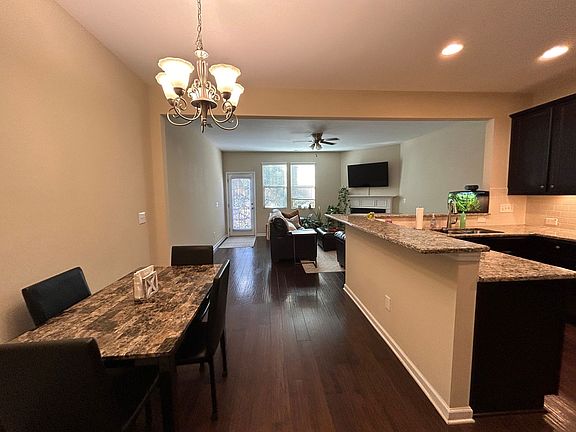 Beautiful townhome with one car garage in the area of RTP!!. Easy access to 540 and I-40. Hardwoods and ceramic tile flooring in common area and primary bedroom. Kitchen with upgraded dark cabinets, tile backsplacsh, stainless steel appliances, pantry and lots of counter space. Family room with corner fireplace. Primary suite with ceiling fans and bath with dual vanity and walk in shower. Ready for February move in