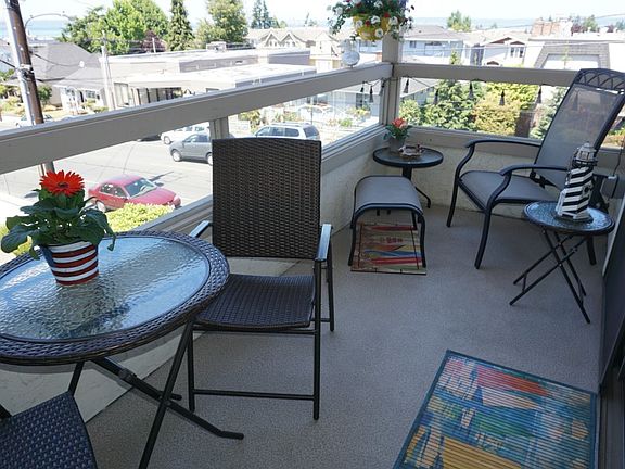 Rare sale in beautiful downtown Edmonds w/views. See the ferries coming & going, mountain view & amazing sunsets from private balcony. Open the slider & let the cool sound breeze blow through. End unit feats 2 beds & 2 full bath w/views all around. Complex is secure, dues are low, incld 2 parking spaces, elevator, newer appliances & lots of addl storage. Minutes walk to downtown Edmond shopping, restaurants, library, & entertainment. Close to ferry & I5 making this property to perfect location.