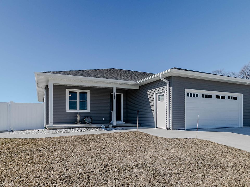 Experience serene sunsets from the comfort of your back patio! The expansive, low-maintenance concrete patio, complemented by a stylish concrete seating wall, provides ample space for entertaining and relaxation. Inside, natural light floods the space, accentuating a welcoming atmosphere throughout. The home features a practical "drop zone" with bench and hooks & laundry room with sink at the garage entrance. The main level offers an open concept living room and kitchen that boasts a spacious island with seating. Awaiting your personal touch, the lower level is prepped for expansion, complete with an egress window and plumbing for an additional bathroom, offering endless possibilities for customization. 48 hour binding acceptance