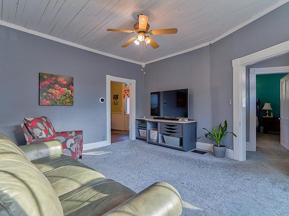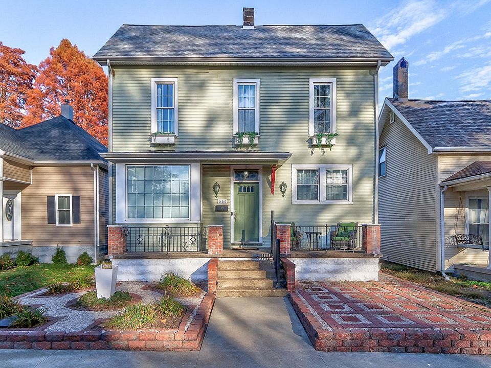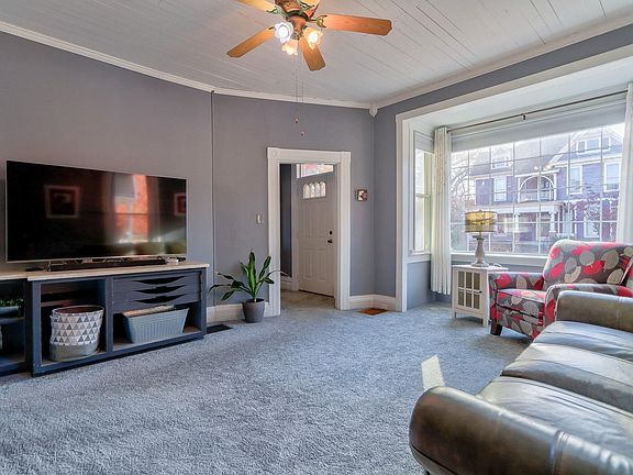 This 3 bed, 2 bath two-story home offers historic charm, tall ceilings, and great natural light throughout set in a friendly, walkable Mount Vernon neighborhood near the river and local spots. Step from the porch into a welcoming foyer that opens to a bright living room with a large window and crown molding. The eat-in kitchen features a breakfast nook with custom cabinetry and a built-in desk, plus a dedicated dining room with original hardwood. The main-level primary bedroom features an ensuite bath, while two bedrooms and a second full bath are located upstairs. Extra touches include built-ins, main-floor laundry, and an unfinished basement for added storage. Outside, enjoy a fenced backyard with a newer deck, beautiful landscaping, and a detached 2.5-car garage with alley access. Updates include LVP and carpet (2018), custom blinds and drapes, and refreshed landscaping.