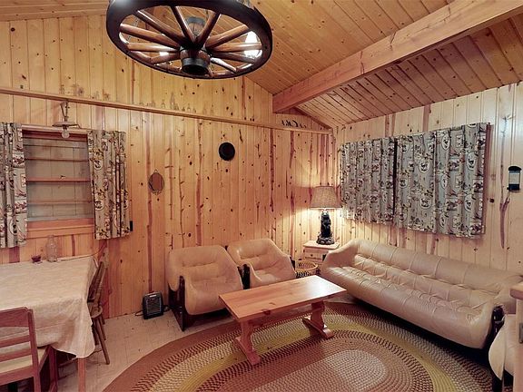 Fun cabin in the town of Cripple Creek. Close to fishing, hunting, loads of outdoor activities! Walk to casinos. Vaulted living room plus 2 bedrooms. Kitchen and dining room overlook living room. Bathroom with shower. All furniture included. Flat lot with trees.