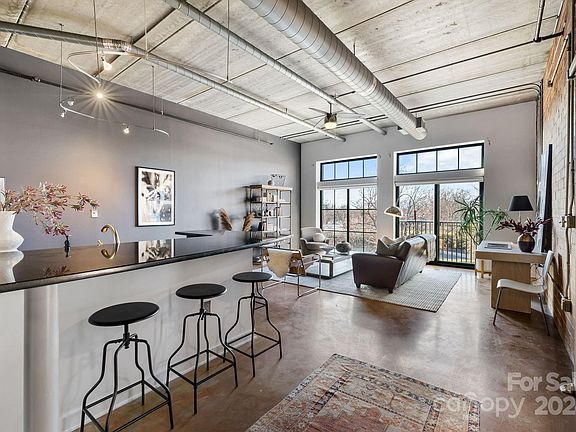 Wonderful opportunity to live in Uptown's historic Fourth Ward in this stylish condo. Bright and airy, this condo lives very comfortably. This is a rare corner unit, located on the third floor, and one of only three units with the larger corner floor plan. Inside, there's a sleek industrial modern feel with stained concrete floors, exposed metal ductwork, brick walls, and 13 foot ceilings. Fresh updates in the kitchen - with a great sized peninsula for additional seating. Primary bedroom features floor-to-ceiling windows, and some neat views perched above Graham Street. The full bathroom features tasteful updates as well. Custom shades from the Shade Store were installed throughout in 2022! Unit features storage closet, and full-sized laundry room. All appliances convey, including washer and dryer!