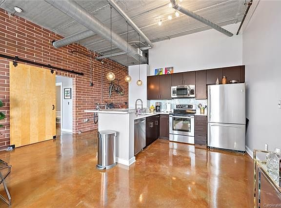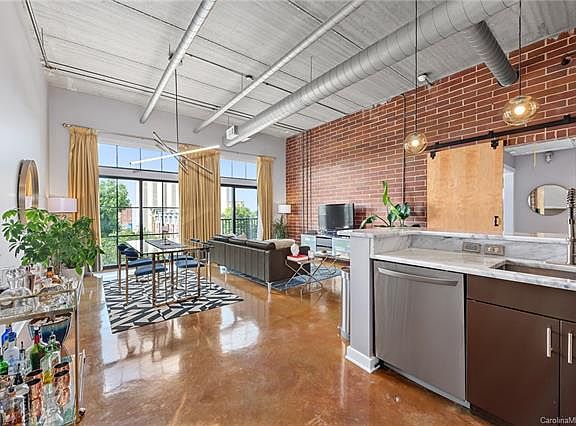 Picture perfect top floor corner condo in 626 N Graham. Industrial modern design featuring exposed brick, polished concrete floors, exposed metal ductwork, oversized windows and 13ft ceilings. Bright and airy, this condo lives very comfortably. Updated contemporary kitchen with modern painted cabinetry, marble countertops, tile backsplash and stainless steel appliances. Crisp updated bathroom with new vanity and marble top, lighted mirror and modern tiled shower. Master closet with custom shelving system. This unit is one of the largest in 626 N Graham. Ample storage including attic space, a rarity in this building. Great convenient Uptown location close to the action. Secure building entry. Private parking space.