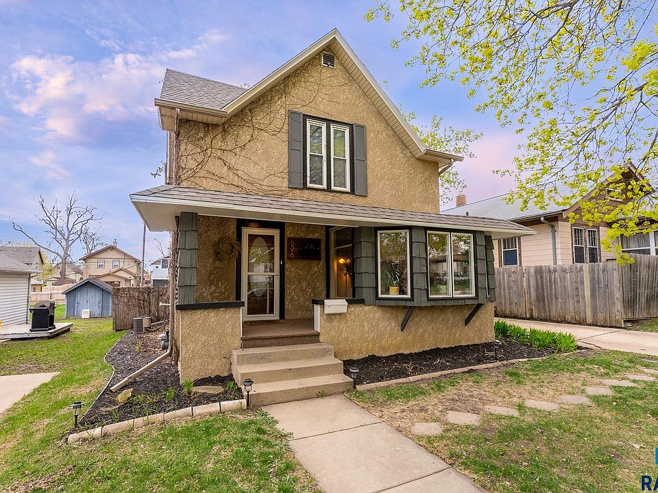 Welcome to this exquisite 1.5-story home, gracefully nestled in the heart of Sioux Falls. This home effortlessly combines vintage charm in a convenient location . As you step into the spacious main floor living room, you'll be greeted by an abundance of natural light streaming through the large windows, creating an inviting atmosphere. The main floor offers a large living space, sun room kitchen. Hosting memorable gatherings is a breeze with the conveniently located dining room adjacent to the kitchen, providing an ideal setting for entertaining friends and family. Feel comfortable with 4 bedrooms all situated on the same level. A 2 stall detached garage features alley access and additional living space above. Embrace the wonders of nature just blocks away, as this home is in close proximity to the serene Terrace Park and enchanting Japanese Gardens. Schedule your showing today!