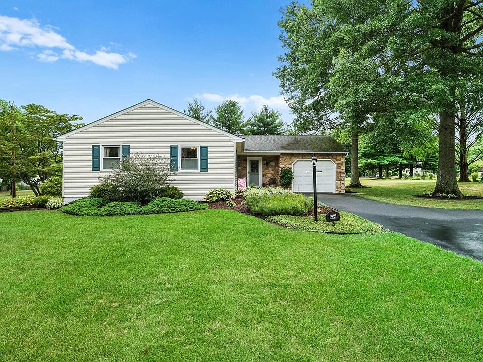 *** All offers are requested by Wednesday, August 14th at 6pm. *** Welcome to this meticulously maintained ranch home on almost ½ acre in Hilltown Township. The beautiful kitchen was designed and installed by Doremus Kitchens and has loads of storage, stainless steel appliances, quartz counter tops and tile backsplash. Hardwood floors throughout the entry way, kitchen , dining room and bright and sunny sunroom. The sunroom has two sets of sliding doors, skylights and a beautiful bay window, a perfect spot for morning coffee or evening refreshments. The living room has a beautiful brick fireplace for cozy wood fires in the cooler months. There are 2 bedrooms and 2 full baths, Master bath was remodeled in 2014 and the hall bath and laundry closet was also added in 2014. On the lower level there is lots of storage as well as a nice man cave! Bar is included! Off the sunroom, step out onto your backyard oasis. Lots of beautiful and well loved gardens and flower beds. Attached one car garage with Epoxy floor. So many upgrades and beautiful touches to this home, you don't want to miss it!