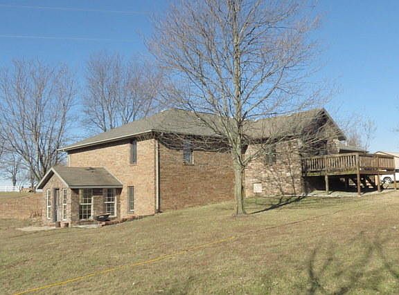 A beautiful country setting, stately trees & white rail fencing along the road combined with a bricked entrance are just the prelude to this custom built, one owner, all brick walk-out basement home with 120 acres. There are 5 Bedrooms, 3 Full Baths, 3 Living Areas, Kitchen, Casual Dining, Formal Dining, large main floor Laundry Room and a 2-car attached Garage. There are 3 Bedrooms on the Main Level and 2 additional Bedrooms in the Basement. Floor covering consists of hardwood, tile and carpeting. The Living Room on the main floor has a gas log fireplace. The Kitchen is equipped with lots of cabinets & counter space, refrigerator, dishwasher, an island with sit down bar and a smooth top electric range/oven, a built-in desk and a built-in glass front china cabinet in the Casual Dining.