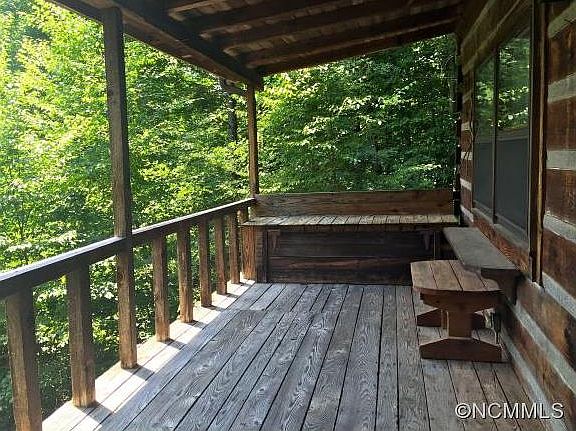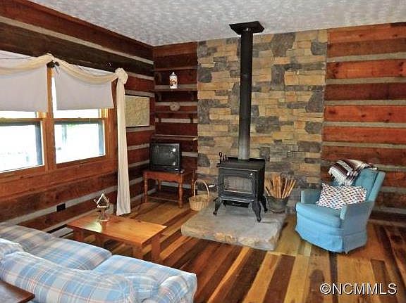 Charmingly rustic log cabin in private setting with creek makes perfect mountain getaway at an affordable price! Kitchen and bath are recently updated. Granite countertops and stainless steel appliances in kitchen. Beautiful wood floors throughout kitchen, dining area, living room and bedrooms. Located on 1.6 naturalized acres--includes storage building, covered deck, flat patio area, split-rail fencing and mountain view. Furnishings available.