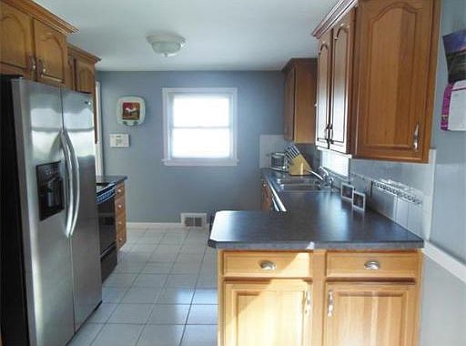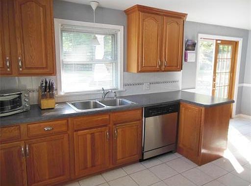 Nothing to do but unpack your bags and settle right into this Well Maintained Ranch style Home w/2 Car Garage set on Rogers Avenue! This Home offers an Updated Eat-In Kitchen w/Lots of Cabinets, Tile Floor & Sliders to large composite Deck overlooking a picturesque backyard & access to Enclosed Breezeway w/Tile Floor, large Living Room w/Gleaming Wood Floors, Wainscoting, Crown Molding & handsome Fireplace, 3 Generous Size Bedrooms w/Wood Floors & Ample Closet Space and Updated Full Bath w/Tile Floor. Fantastic additional living space in the nicely finished basement w/Charming Knotty Pine Walls, W/W Carpeting, Bar and Half Bath. With the Newer Roof, Replacement Windows, New Hot Water Tank, Newer Garage Doors, and Entry Door (all APO) along w/Central Air, this Home is the One!