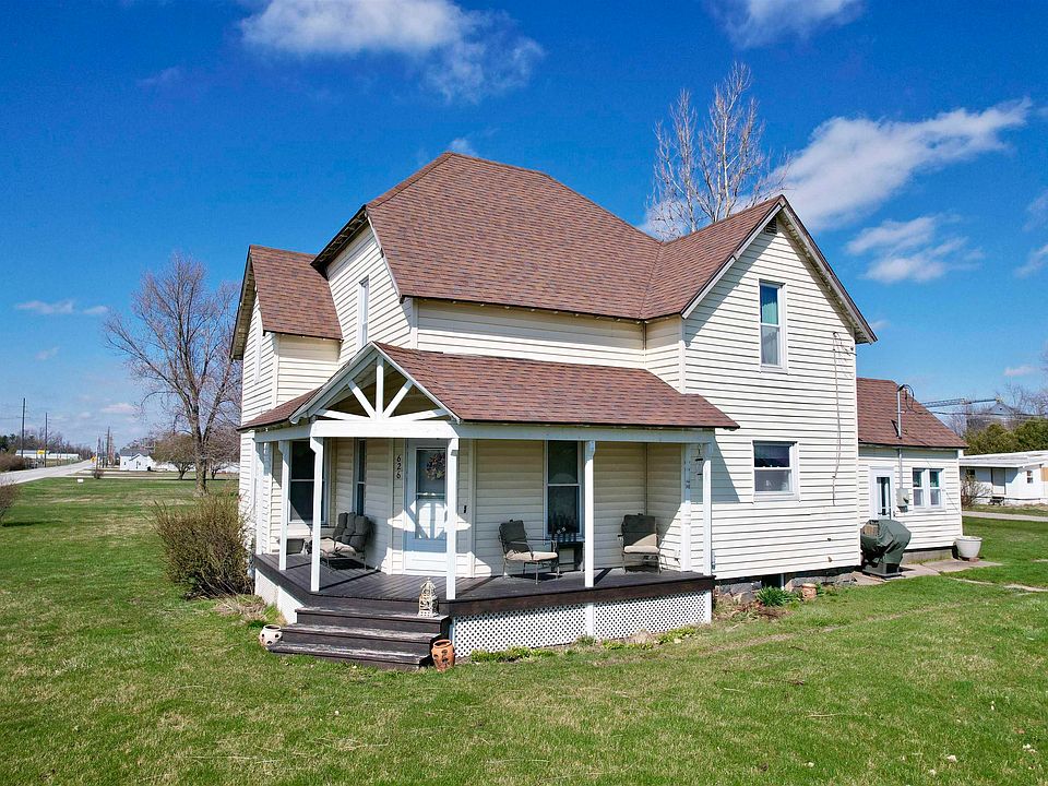 Charming 4 possibly 5 bedroom, 1 bath home on the edge of town. Although in town, this home sits on just over an acre of land with a 2 car detached garage. This home has newer windows and doors, new electric panel upgrade. The front covered porch faces the west to watch the beautiful sunsets. There is a one car detached garage and a small garden shed also. This home is a must see to appreciate.