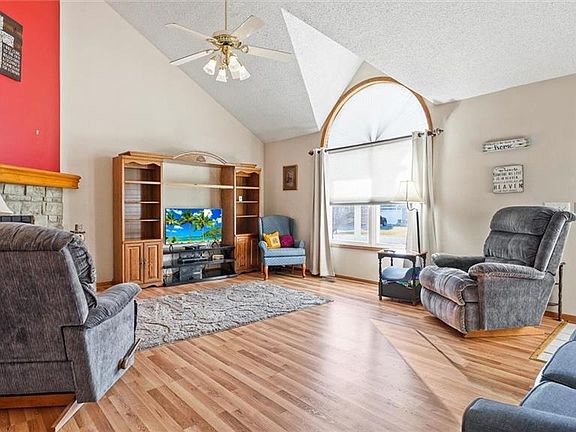 Beautiful 1.5 story home!! Location is just one block from the high school. HUGE Living room area on the main with fireplace. Kitchen is a few steps up and overlooks the main floor. From here you can go out back or down the hallways to two more bedrooms and full bathroom. Master bedroom is a few more steps up. Master bedroom is LARGE could include a sitting area with master bathroom. Downstairs is a second living area. Utility room downtairs and a den/office. Half bathroom downstairs. Fenced yard. Home backs to trees/field. Shed stays.