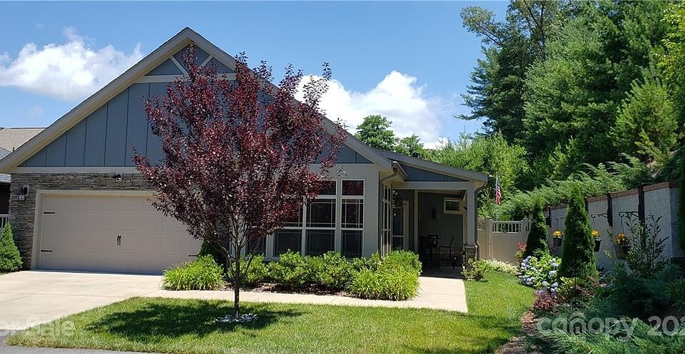 This meticulously maintained Promenade model in The Orchards of Flat Rock offers unequaled privacy and many extras. A backyard oasis with custom landscaping, large tiled patio with electronic awning and a glass enclosed porch off Master Suite. Many custom features including granite countertops, extra large walk in panty, dual 5 burner cooktop and convection oven, tile and hardwood floors. Floor to ceiling stacked stone, vented gas fireplace with built in cabinetry on both sides. An over sized 2 car, insulated, garage with outlet for car charging. Large Master Suite with wood floors, Elite Ella walk in tub in 2nd bath and large sunroom for office or den. Live in low maintenance friendly community with low HOA fees, a community clubhouse, heated pool, fitness center and more.
