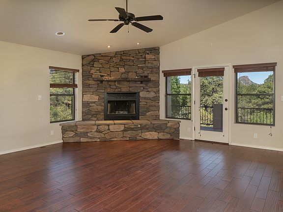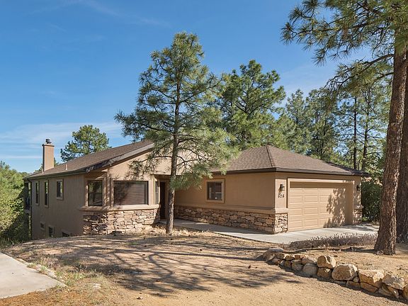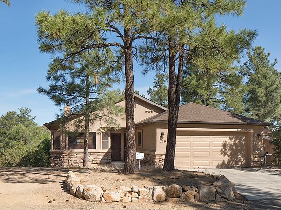 The quintessential home for the buyer looking for a newer home set in the tall pines of Prescott. Custom-built in 2005, this 2931 square foot, 3 bedroom, 2 ½ bath, a 2-car garage, live on one level home offers a great view of Thumb Butte. The features found in this home include hand scraped, engineered wood floors, vaulted ceiling, a stone-hearth wood-burning fireplace and composite decking on both levels. The open concept floor plan has the spacious kitchen with granite counters and stainless steel appliances and opens to a breakfast area/dining room. The master suite has an oversized walk-in closet, garden tub plus separate shower, dual vanities and linen closet. The lower level has 2 more bedrooms and a full bath with a bonus room/office/potential bedroom. Each level has its own laundry room. Perfect full time residence or get away retreat with no HOA.