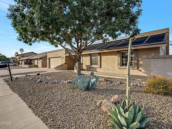 Pride in ownership. In just 5 years, the current owner has put lots of time, effort, and money into improving/updating this house. Created passthrough in wall from living room to dining room enhancing the large, open, airy feeling in the family and dining rooms. Added water softener and RO system. Upgraded master bathroom shower. Updated the backyard with artificial turf. Replaced old shed with a new Premier Ranch Tuff Shed. Expanded the cool deck/patio area. Upgraded pool equipment, added a solar system to heat the pool, improved the water feature, resurfaced the pool, and so much more!!!! This 4 bedroom, 2 bathroom, 2 car garage house has 2,253sf of space on a lot of 9,435sf. Key features include: no carpet anywhere in the house. Flooring is all wood or tile. Beehive fireplace Separate exit from master bedroom to backyard. Vaulted ceilings. Granite counters in the kitchen. Skylights. Alarm system. RV gate to alley. Experience lower electrical bills from the solar panels. Plus there is no HOA!!!!