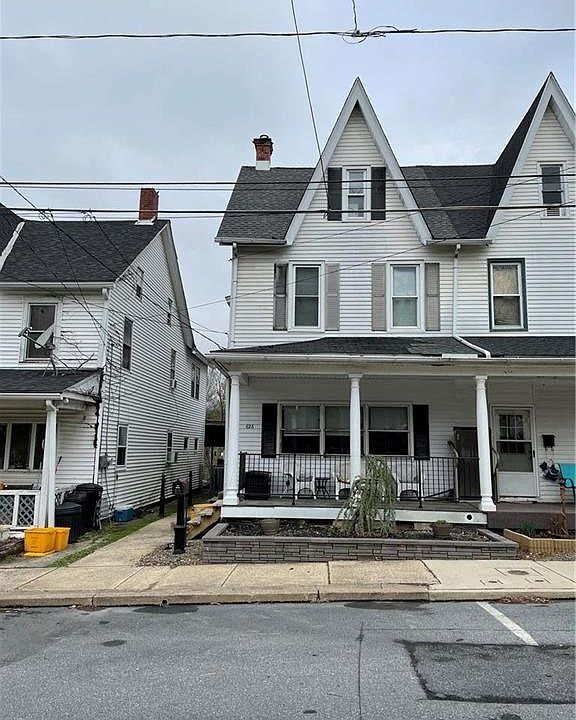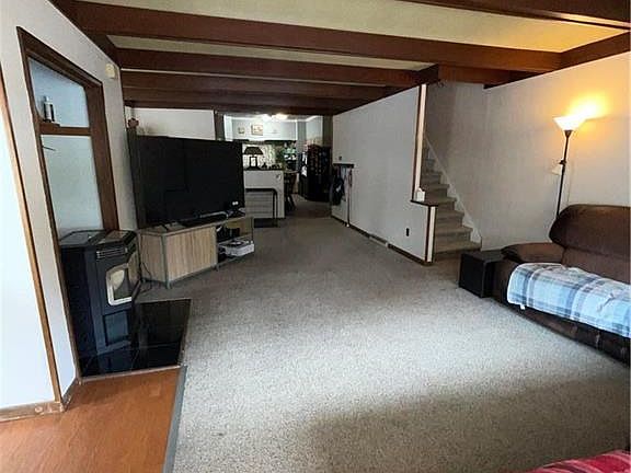 Nice twin in quiet neighborhood! Home features 3 bedrooms plus attic space that could be a 4th bedroom if you need-all you need is heat. The living room is immense and features a pellet stove for supplemental heat. There's also a neat alcove in the room that's perfect for a desk for people or students who work from home. Upstairs you'll find three spacious bedrooms and a bathroom with many updates, including brand new flooring. There's a full basement for storage, oil forced air heat and off street parking too!