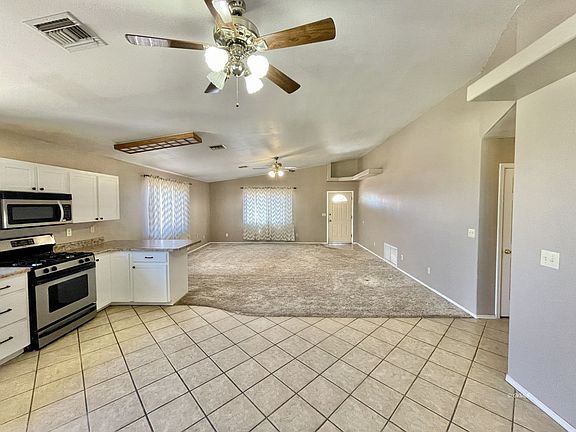 You'll find peace and gorgeous mountain views in this 3 bedroom, 2 full bath home south of town. This great home has so much to offer. It offers spacious, open concept living, kitchen and dining areas with vaulted ceilings and built in plant/d cor shelves. The large master bedroom features a huge walk-in closet. The exterior features a metal roof, low maintenance front yard, huge fully fenced in back yard with a block wall, RV gates, chicken coop, shed, garden area, covered patio and trees. Don't miss out on this awesome home!