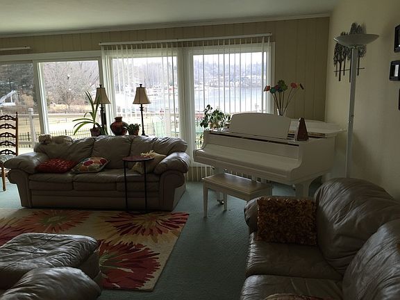 Beautifully updated 4 bedroom, 2 bath lakefront home. Enjoy fishing, water skiing, tubing & jet skis from your back yard! Walkout finished basement with minibar to lower patio. 10' deck runs the length of the house upstairs with 4 person Jacuzzi hot tub accessible from french doors in master bedroom. Kitchen features granite counter tops with stainless appliances and hickory cabinets. Attached 3 1/2 car garage. Lot is lake irrigated front and back. Fenced back yard with gated lake access. New lifetime seawall and 24' dock. A 2008 Bayliner 185 and boat lift with electric motor are negotiable with this home. 4 bedroom - 2 upstairs, 2 downstairs 2 bath - 1 upstairs with jetted tub, 1 downstairs 2 fireplaces - gas upstairs, wood burning downstairs