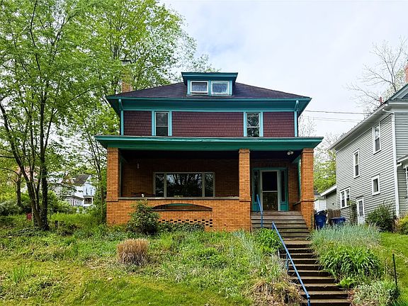 Welcome to your dream home! This beautiful two-story residence boasts 3 bedrooms & 1 bath, situated on a generous corner lot that combines the best of downtown living with a private, serene atmosphere. Exterior features a charming blend of brick & cedar siding with a large front porch that invites you to relax and take in the neighborhood vibe. Step inside to find stunning hardwood floors that flow throughout. The formal dining room seamlessly connects to the kitchen, creating an inviting space for family gatherings and entertaining guests. From the kitchen, access the back deck and brick patio, perfect for hosting summer barbecues or enjoying a peaceful morning coffee. At the heart of the home, the living room features an impressive window that floods the space with natural light, complemented by a cozy wood-burning fireplace. Additionally, the full unfinished basement provides space for storage. Don’t miss the opportunity to make this charming home your own!