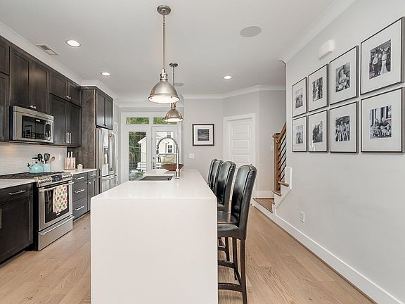 Beautiful Legacy Custom Homes former model END UNIT in Oakwood Townes! This gorgeous home features spectacular upgrades including a gourmet kitchen with charcoal cabinets to ceiling, soft close drawers/doors, Emtek hardware, quartz waterfall center island, beautiful tile backsplash, Electrolux SS appliance package, and a front balcony. Open and spacious family room features an elongated fireplace with floating shelves, built-in cabinets, and a rear deck. Upstairs you'll find the primary suite with a beautifully tiled shower with built in bench, quartz dual vanity, and large walk-in closet. The secondary bedroom features an ensuite bath and large closet. On the lower level, you'll find a spacious flex room with an adjacent half bath, and an oversized 1-car garage. All of this plus engineered hardwoods throughout the home, custom lighting, custom shades, trex decking, upgraded metal railings, and a tankless water heater. Near everything downtown has to offer - restaurants, breweries, coffee shops, groceries, dog parks, and more! - but in a tucked-away neighborhood.