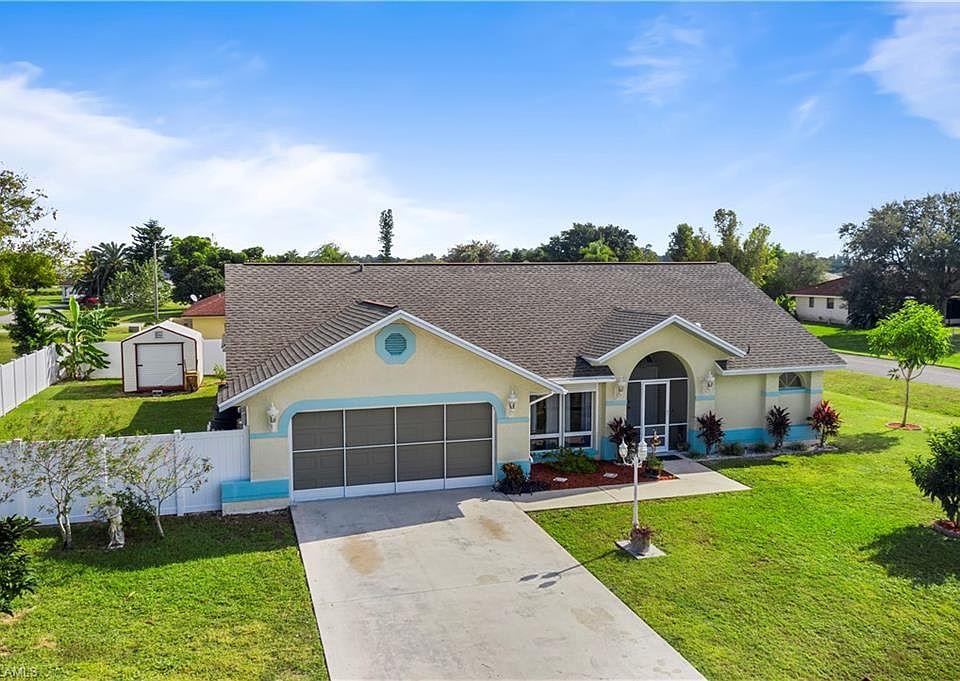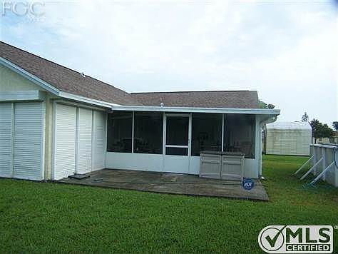 Affordable home in Amberwood Estates, a quiet well established neighborhood (No HOA fees), ROOF REPLACED IN 2018 ,central water and sewer, wide streets and curbs, beautiful oversized lot with landscaping, privacy fencing, a shed for storage or a workshop with electricity, a paver-stoned area for your BBQ grill, a fire pit, sun deck, open lanai, irrigation on well with auto sprinkler system, and so much more, you have to see in person to appreciate. Many trees including avocado, loquat, and even a banana tree! The interior of the home features cathedral ceilings, granite countertops, large pantry, stainless steel appliances, an enclosed Florida room, formal living and dining room plus family room, two private rooms under truss with roll down shutters, walk-in closets (one is cedar-lined), new carpet, new paint, new ceiling fans and lighting fixtures, new plumbing fixtures, new baseboards, new electrical outlets, new hot water heater, a large bar in the kitchen for entertaining and a functional split floorplan. Very convenient location in a quaint neighborhood, yet surrounded by shops, grocery stores, medical offices and just 25 minutes away from the SWFL Regional Airport.