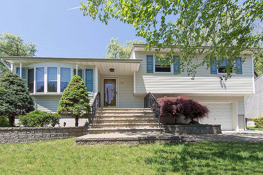 Exclusive Listing of The Maggee Miggins Group. If you or anyone you know may be interested in this home, please call Maggee at 973-879-9711. Picture perfect, this engaging split level is loaded with curb appeal. Ornamental trees, colorful plantings and lush greenery frame the exterior. From this quiet neighborhood street, shopping, recreation, schools and NYC transportation are only minutes away. Inside, the spacious foyer reaches to the kitchen and also opens to a generous living room. A front bow window welcomes the sunlight into nearly every corner, while the wood floor continues into the formal dining room. In the dining room, sliders open to the deck. The deck is ideal for dining and entertaining, while beyond the backyard is made for play and gardening. Opening to the dining room, the sparkling kitchen is the home cook’s best friend. White cabinets, ample counter space and quality appliances are all on hand to help get the job done. A few steps down from the kitchen take you to the family room. Extending from front to back, the family room has access to a full bath and door to the patio and backyard. Three bedrooms and a full bath are located on the second level. All three bedrooms have ample closet storage and pleasant treetop views. Serving these bedrooms through the daily rush, the updated hall bath includes an oversized vanity with sink and a tile shower/tub. There is a recreation room and an office on the lower level. The unfinished portion includes a laundry room with access to utilities and a separate workshop/storage room. This is a home that requires only your furnishings and personal touch. Immaculate interior spaces, a pretty setting and prime location come together in this one remarkable package.