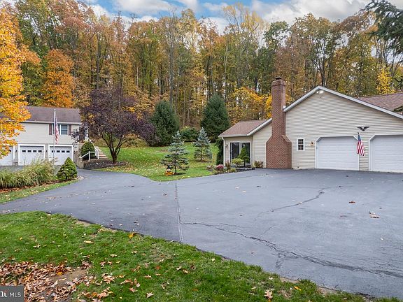 Privacy abounds! Great opportunity to own this amazing brick and vinyl ranch with 3 bedrooms, 2 ½ baths on 4.33 acres in the Twin Valley School District! Imagine watching the deer from your covered front porch or very large back patio. The very spacious living room comes with crown molding and hardwood flooring, as well as the lovely, formal dining room. The kitchen has tons of cabinets and countertop space along with a peninsula for extra seating. The family room is quite cozy with a brick fireplace, hardwood flooring and crown molding and has access to the large 3-Season sunroom with access to the rear yard. Spacious primary ensuite with a brand new, gorgeous primary bathroom for relaxation and includes a tile surround shower and crown molding. Two additional spacious bedrooms, one with a walk-in closet and a newly remodeled hall bath as well and a large mud room with laundry sink.. There is lots of room for storage in your attached, oversized 2-car garage and additional storage in the lower level. The 2nd home has 2 bedrooms and 1 full bath, with a double vanity, and is 1,640 sq. ft. and comes with a 3-car attached garage, two cars deep, it’s own driveway and address. It has a cathedral ceiling, large kitchen with recessed lighting and a breakfast area. Each home has its own septic tank, shared drainfield and well (per township regulations). The property is close in proximity to all major highways.
