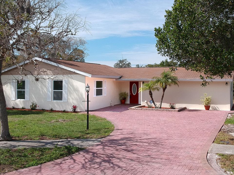 Location, location, location! Absolutely impeccably remodeled from top to bottom. Don't miss this gorgeous home that has been updated with quality high end finish materials! Home has been renovated better than new including new a/c, newer roof, brick pavers EVERYWHERE, new floors, new wood cabinetry with soft close drawers in the kitchen and bathrooms, marble counter tops in baths and gorgeous granite in the kitchen, and designer paint throughout. Located close to everything in the heart of Spring Hill on an over-sized quiet cul-de-sac lot with no rear neighbors. Easy accessibility to shopping, dining, medical, and excellent schools. Fully insurable repaired sinkhole with all documents available. Bring your toothbrush and move right in!
