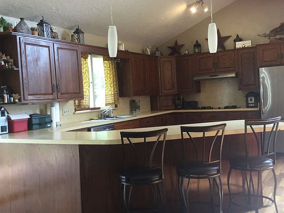 Beautiful Home! Open Concept with Vaulted Ceiling's Large Kitchen, Custom Cabinet's with Breakfast Bar, along with Big Table space and a little writing Nook. Stainless Steel Appliance,s .Built in Oven. Great Room with Wood Burning fireplace with insert. Three bedroom, Two and half Bath's Main Floor Laundry. Partial Basement and Two Car Garage and POLE Barn!