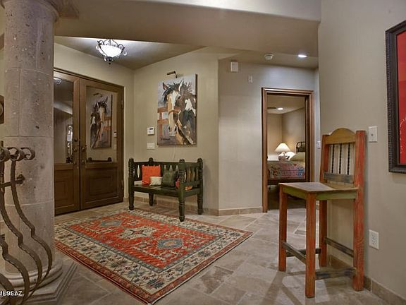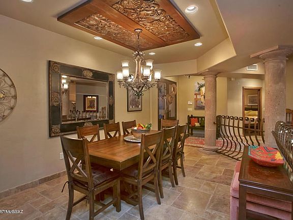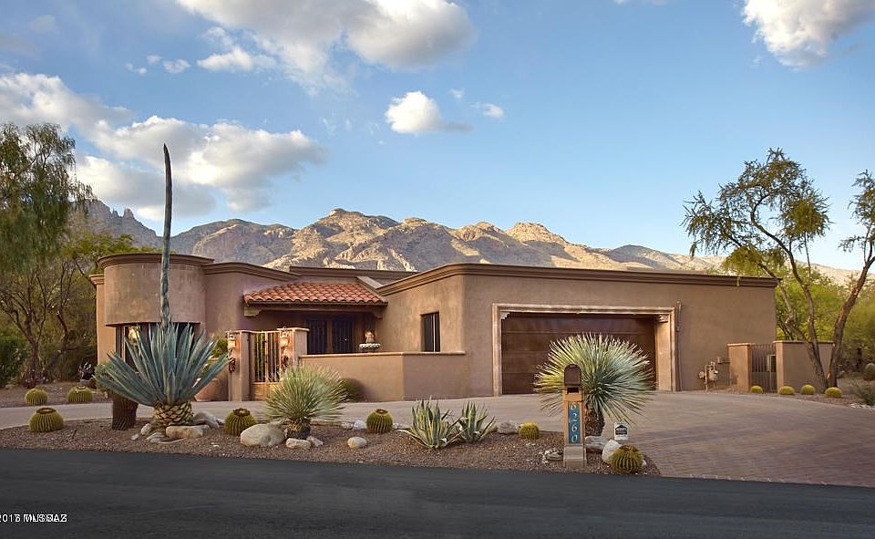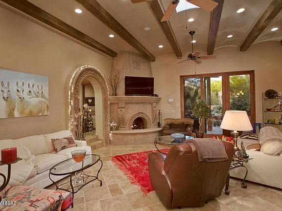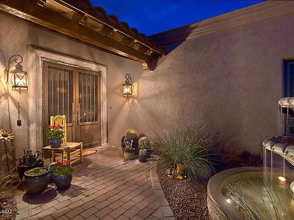 In sought after La Paloma Ridge Estates, this home features the highest quality finishes throughout. Welcome guests in the front courtyard w/stone fountain & custom wrought iron gate. The open floor plan flows between the great room w/dramatic cantara FP, DR and gourmet kitchen w/ granite island and stunning Catalina views. The spacious master suite has a fabulous cantara FP and a luxurious bath. Both guest bedrooms have ensuite baths affording your guests convenience and privacy. The backyard oasis features a stunning pebble-tech pool and fire pit with mountain backdrop and decking that wraps around the home. Screen Masters privacy screens throughout.