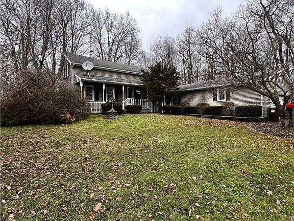 Welcome to this move in ready home that sets back off the road! Has 2 car garage, shed, front porch with a swing, as well as back deck for great entertaining that overlooks the view of the 20ft deep pond! As you walk into the home you are welcomed with a charming built-in bench along with a cozy dining room, & living room, with gas fireplace! A first-floor bedroom is right off the living room. The kitchen offers plenty of room to entertain & lots of natural lighting. Laundry room & bathroom right down the hall leading to a huge family room with wood stove, including sliding glass doors to the back deck. Must-see Master bedroom & bathroom with jetted tub, double sinks & shower. Upstairs has two desirable bedrooms along with an office and full bathroom. Come view this beautiful home in Andover Ohio!