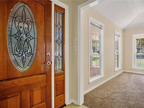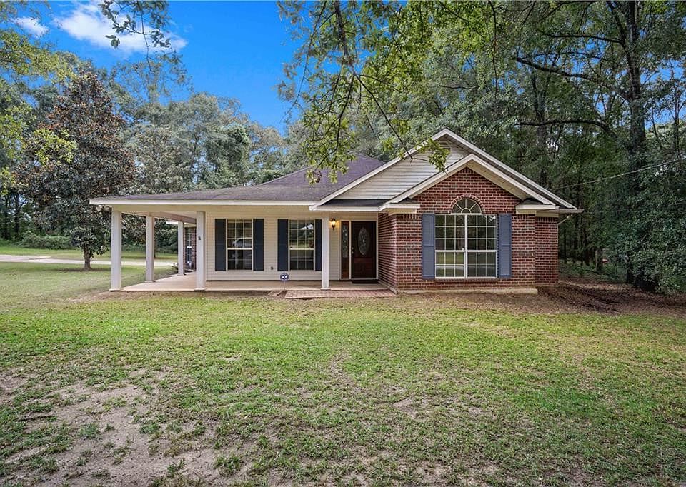 This beautifully laid out home with split brick floors and tons of natural light is just right! Warm and inviting its just been freshly painted! Floor length windows; Wrap around porch is perfect for a rocking chair or two; Low maintenance brick and vinyl siding; Fireplace to cozy up around! The kitchen is a show stopper with wood cabinets that reach all the way to the ceiling, so much storage; an island with breakfast bar seating, and wrap around windows to get the day going! Walk-in pantry for the kitchen, big enough to put a deep freezer. Large bedrooms with NEW CARPET and Walk-In Closets! Glamourous Master bath with jetted tub, separate oversized shower and double sinks. Attached carport makes life easy. Sizable lot with beautiful Oak trees is private and inviting, backing up to woods, its your own private oasis. Metal building will handle all of your storage needs. Move in ready, checks all the boxes, its a must see!!