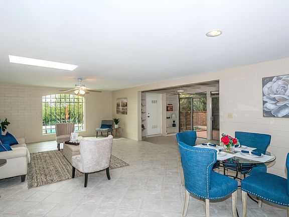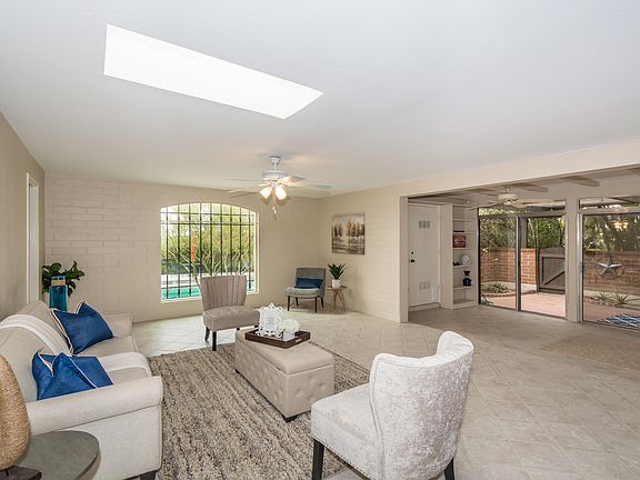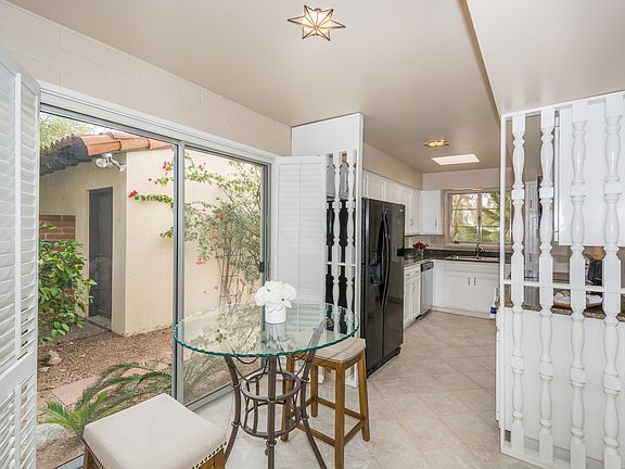 Welcome home to the highly desirable community of Catalina Pueblo with enchanting grounds, 3 community pools, and just a stone's throw to some of the best shopping and dining Tucson has to offer! This charming burnt adobe townhome on a premium lot has a lovely courtyard entry, very spacious living and dining areas w/neutral tile and an inviting kitchen w/pull-out cabinets, granite counters, SS appliances and a cozy breakfast area. It also has its own private entrance to one of the community pools, almost like having your own without the maintenance! Spacious master w/ensuite bath and walk-in closet. Bonus AZ room has built-in bookshelves and exposed beam ceilings. Multiple skylights make this home light and bright. Delightful back patio w/pergola, brick pavers and mature landscaping!