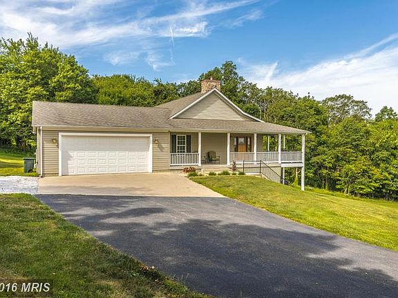 Custom Built 4 Bed 4.5 Bath 2885 Sq. ft. Ranch w/ Million Dollar View 50+ Miles. Private & secluded on your own mountain top featuring 2885 Finished Sq. Ft. on 15+ Acres. Large Master suite-His & Her Bath, Gourmet Granite and SS Kitchen w. island, Hardwoods on all main level, Large Open floor plan. Fully finished Rec. room w/ walk out basement. 2/4 Car oversized garage, Shed & Hot Tub