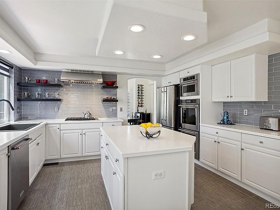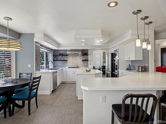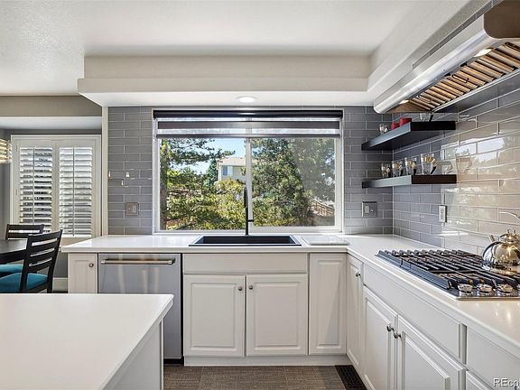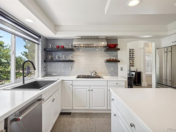 Welcome to this stunning modern home located in the heart of Highlands Ranch! This 5-bedroom, 4-bathroom gem sits on a corner lot in a large cul-de-sac, featuring an extended Trex deck, 3-car garage, spacious driveway, and a walk-out basement. The oversized kitchen is perfect for culinary adventures, offering a breakfast nook and bar seating. This home has been meticulously maintained, updated with luxury vinyl on the main and upper levels, custom tile kitchen floor, custom floating shelves with a glass subway tile backsplash, new stainless-steel appliances, new sink, and a gas cooktop. Enjoy family meals in the dining room or work from home in the versatile den, currently used as a serene reading and meditation room.