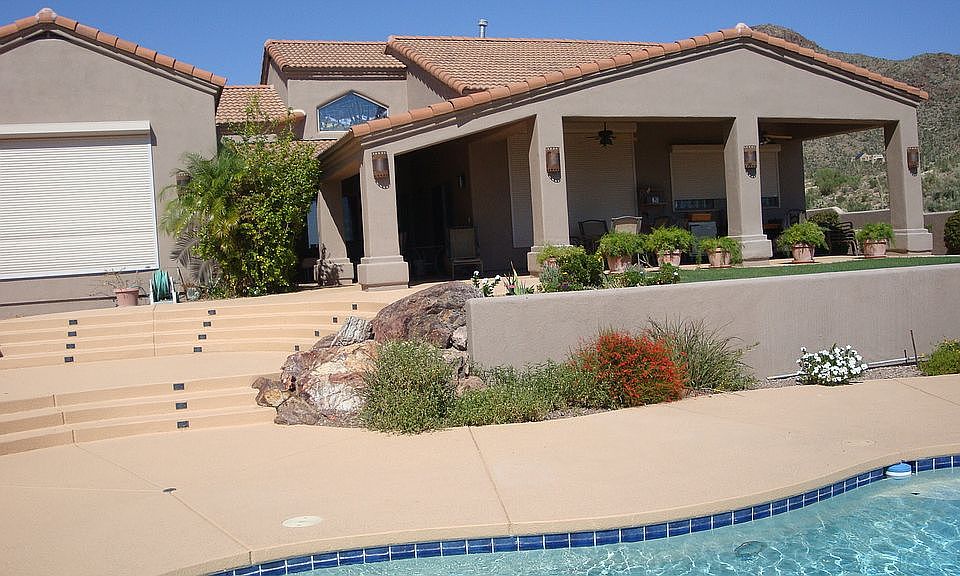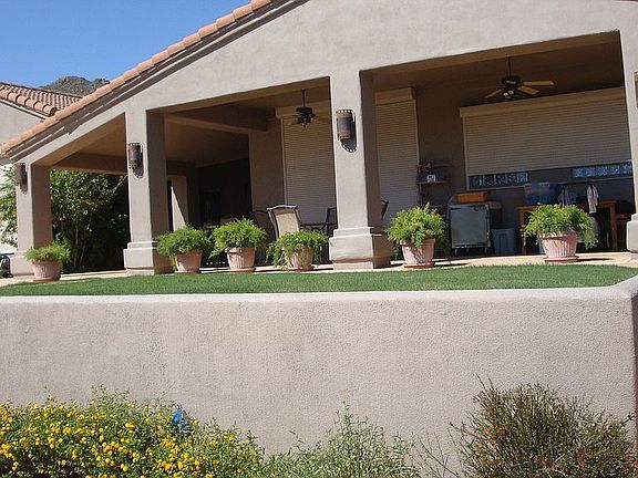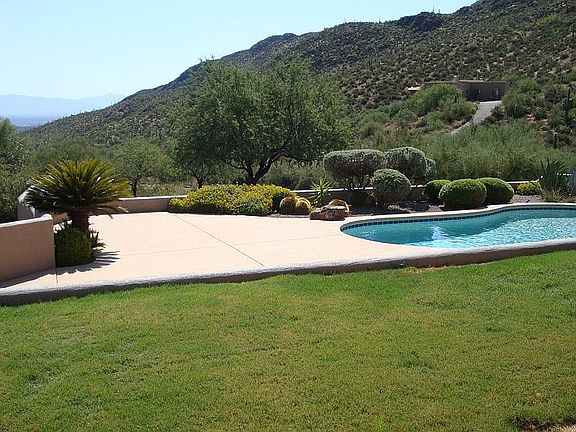Magnificent drive up to one of the most spectacular canyons above West Tucson gives way to a striking, custom home in prestigious gated Trails End Estates. STUNNING views of the city lights, mountains, canyon walls and Sonoran Desert. Spacious living areas with soaring high ceilings. Gourmet island kitchen with custom cedar wood cabinetry, granite counters and high end appliances. Luxurious bathrooms. Custom dual pane windows. Solid cedar doors. Beautiful 16'' Quarry tile floors. Separate library & sitting rooms. Custom built-ins. No interior steps. Resort like outdoor living w/refreshing pool, waterfall, BBQ, desert landscaping & amazing views! See Custom Features in attached documents, floor plan & 3D Scan. Home is exempt from HOA dues! See agent only remarks for offer requirements.