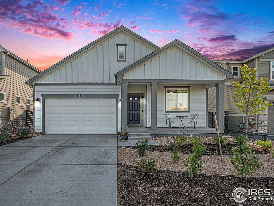 Location, Mountain Views, Many Amenities! This stunning 3-bedroom, 2-bath residence offers breathtaking mountain views and a spacious, open floor plan that's perfect for both relaxation and entertaining. As you step inside, you'll be greeted with a grand entry as you enter into a naturally lit living area that seamlessly flows into the dining and kitchen spaces. The upgraded appliances and rich espresso cabinetry makes this kitchen a chef's delight, combining functionality with modern elegance.The primary suite provides a tranquil retreat, complete with an en suite bathroom, dual vanity and large walk-in closet. Two additional bedrooms offer plenty of space for guests or a home office. Head down to the expansive basement, with 9'+ ceilings, perfect for creating your additional living space to fit your lifestyle needs. With an equal amount of square footage in the basement as the main level, there is room to easily add two spacious bedrooms, a rec room, and storage room! Step outside to enjoy your morning coffee or evening sunsets on the patio while taking in the stunning views. Located in an up and coming neighborhood, you will feel right at home with the luxury of "the HUB" a local coffee shop and free space perfect for working or meeting with friends. Close enough to bike to amenities, shops, gyms, restaurants, and outdoor activities. Centrally located just 3 minutes from I-25 ,you can commute to Fort Collins, Greeley, Windsor and all surrounding areas in just minutes! Don't miss your chance to own this beautiful property in Loveland!