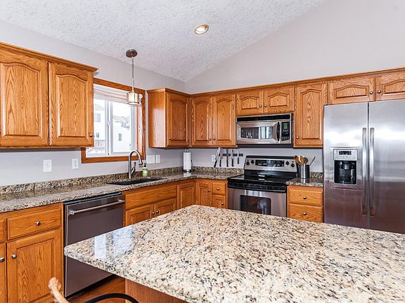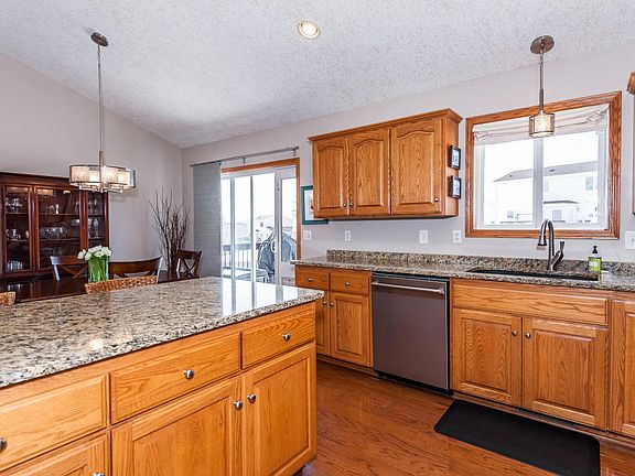 Super spacious with soaring vaults to create an open airy feeling. Granite tops and stainless appliances with hardwood floors in kitchen. Main floor laundry/mudroom off garage entrance, fenced yard, deck, tiled foyer and baths. Large master includes walk-in closet and private 3/4 bath. Paneled doors in lower level and cozy corner gas fireplace. Recent upgrades also include a newer roof!