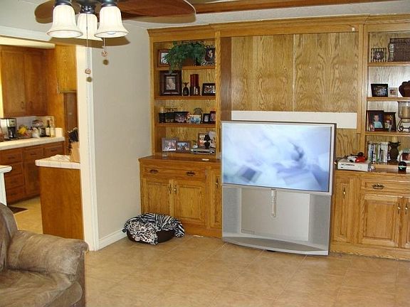 Great Single story home! 4 bedrooms and 2 1/2 bathrooms. Spacious living/dining room with custom slate gas fireplace. Scrapped ceilings throughout with crown molding and recessed lighting. Beautiful built in oak entertainment center in the family room with upgraded tile flooring.Eat in Kitchen area with tile counter tops.Backyard has lush landscaping with covered patio and views of the mountains.Large Master bedroom with attached bathroom. Possible RV access.