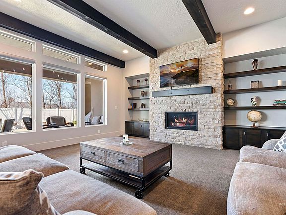 Beautiful home in desirable area adjacent to the foothills & Ridge to Rivers Trail System for hiking, biking or a short drive to Bogus Basin. You'll love the private-quiet location with no through traffic, peaceful backyard with mature trees behind it and no immediate rear neighbors. The spacious entry has a high ceiling & art alcove for your favorite painting. The warm Great room invites you to relax by your fireplace featuring stone work up to the ceiling, stained wood beams and plenty of natural light. The home features an Open concept design with high end finishes throughout including Quartz counter tops, tile backsplash, engineered hardwood floors and transition blinds. The Kitchen boasts large center island with Bosch appliances, Thermador gas range & W/I pantry. The Master bedroom includes a trayed ceiling, dual vanities, WI shower, separate soaker tub & WI closet. Easy access to everything Boise has to offer including downtown, North End, Boise River Whitewater Park, Greenbelt and schools.