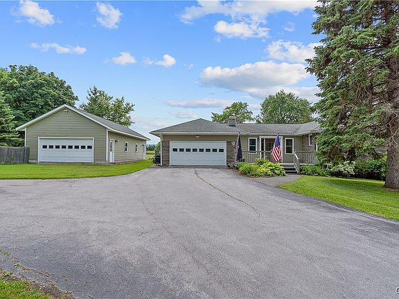 A beautiful property in the Chittenango School District, this spacious ranch offers nearly 3,000 square feet of living space, 5 bedrooms, 2 full bathrooms, a 2-car attached garage, and a recently constructed 40’ x 24’ detached garage with a bonus space at the back, ideal for a home gym, studio, or hobby area. Nearly every inch of this home has been thoughtfully updated since 2010 or later, including a stunning custom cherry kitchen with new appliances, hardwood floors, updated bathrooms, siding, roof, and more. The main level features radiant heat throughout, three generously sized bedrooms, including a primary with its own full bath, plus an additional full bathroom. One of the highlights of the home is the sunroom, filled with natural light and offering peaceful views of the backyard, it’s the perfect spot to relax with a cup of coffee. The finished walkout basement adds incredible versatility with two full-window bedrooms, a cozy family room with a fireplace, and a separate workshop area. Outside, enjoy a freshly resurfaced back deck and a 2023 hot tub, perfect for unwinding or entertaining. The expanded driveway, backyard shed, and private, scenic lot with endless views complete the package. This truly move-in ready home offers space, comfort, and thoughtful upgrades throughout. The square footage was recently measured to reflect 2,994 SF to include the walkout lower level, public records indicate 1,798 SF. OPEN HOUSE, Saturday, June 28 from 11 am to 1 pm.