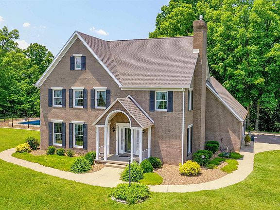 This prestigious and stately all brick 3/4 Bedroom, 3.5 Bath executive home is situated on a gorgoues and private 5.56 Acres in Perry County! A paved drive way leads you to this lovely home surrouned by woods, making such a tranquil and peaceful country setting to this property. This home has been extremely well maintained and in immaculate condition. Welcome home as you enter the lovely foyer to beautiful hardhwood floors and oak staircase. The main level consists of a large living room with a custom gas fireplace. Spacious kitchen with custom Birch cabinetry, with a Mahoghany stain, and a large island.Tiled floor.Granite and marble countertops throuigh out the home. Beautiful distinctive wood trim with rosettes, six panel doors,custom built-ins, recess lighting, through out this grand home with upscale finishings. Formal dining room with hardwood flooring, and abundance of natural lighting. Half bath to this level as well. Upper level offers large master bedroom, double closets and ensuite w whirlpool tub,shower, and double vanity. 2 bedrooms and a smaller room could be used for another bedroom, or a great office space.Large full bathroom , and laundry room. Spacious thrid floor storage or potential for more living areas. Lower level has a large family/rec room, large bathroom, and storage with a walk out. Beautiful french doors off of kitchen area will take you to the amazing outdoor/entertaining area which consists of a 20'x40' in ground salt water pool. Large concrete patio area and walk around to pool. Excellent area for hosting, whether grilling, relaxing or enjoying the pool! Custom wrought iron fencing to pool and patio area. This custom home features an over sized two car attached garage.This beautiful distinctive grand home will catch your eye the minute you drive onto the private black top driveway! Come take a look at the stunning home!