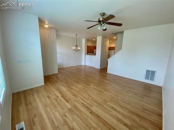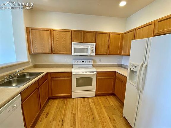 Fantastic interior-unit townhome in an excellent location. As you enter, you are greeted by a spacious living and dining room area that boasts large windows and hardwood flooring. The kitchen has plenty of cabinet and counter space and also has hardwood flooring along with access to the oversized 2-car garage. Adjacent to the kitchen you will also find a half bath with crawlspace access. Upstairs you will find 3 bedrooms and 2 full bathrooms. The master features vaulted ceilings, an attached master bath with double vanity and walk in closet, and freshly cleaned carpet. The second and third bedrooms also features carpet along with ample closet space and is serviced by a separate full bathroom. The upper level also holds the laundry facilities with the washer and dryer included in the sale. This home is also located near shopping and fitness centers along with The Powers Corridor and District-49 schools. Don't miss out!