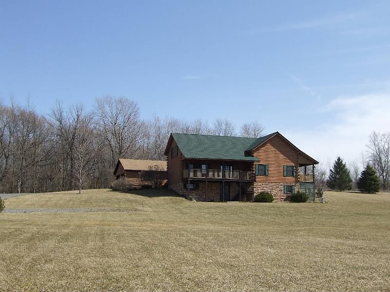 Breathtaking views! This log home offers privacy and acreage. You can see Oneida Lake!