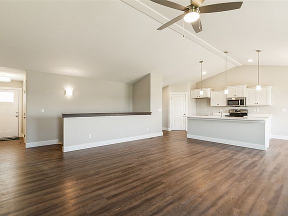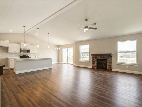 This brand-new ranch home under construction in the Linn Mar school district boasts modern amenities and thoughtful design elements perfect for comfortable living. The use of LVT in the main living space ensures durability and easy maintenance, while the great room becomes the focal point with its stunning stone front gas fireplace, creating a cozy ambiance surrounded by windows that flood the space with natural light. The kitchen is a chef's dream, featuring a single-level island topped with elegant Quartz counters, complemented by sleek white cabinets, and stained trim, offering both functionality and style. The adjacent dining area, with its slider leading to the deck, provides a seamless transition for indoor-outdoor entertaining and relaxation. Additionally, the finished rec room offers versatile space for recreation and relaxation, with the added option of adding a fourth bedroom and full bath. Overall, this home embodies modern comfort, quality craftsmanship, and the potential for future growth, making it an ideal choice for discerning buyers seeking both style and functionality in the desirable Linn Mar school district.